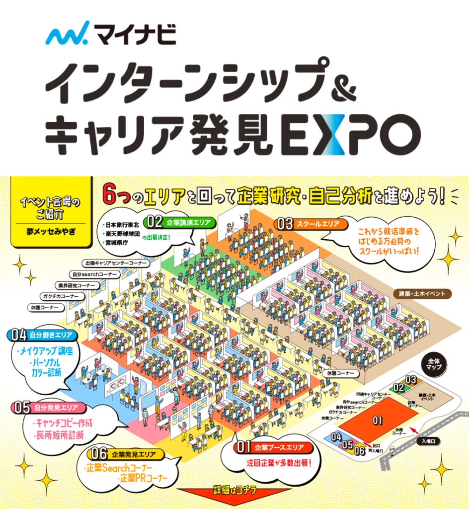 2025年6月1日に仙台市の夢メッセみやぎで開催されるインターンシップ&キャリアプログラムなどを開催する企業が集結する合同説明会に中里工務店も参加します。